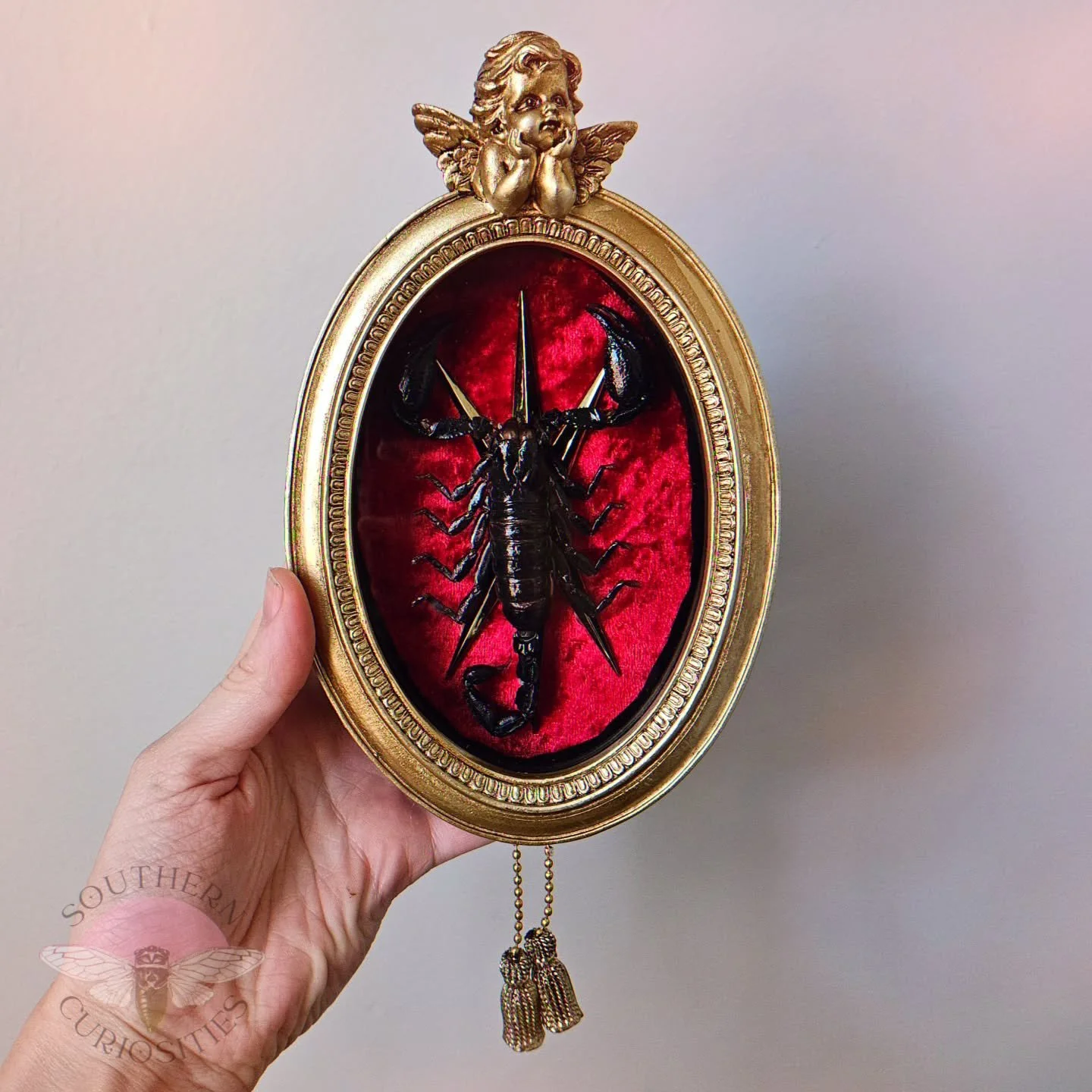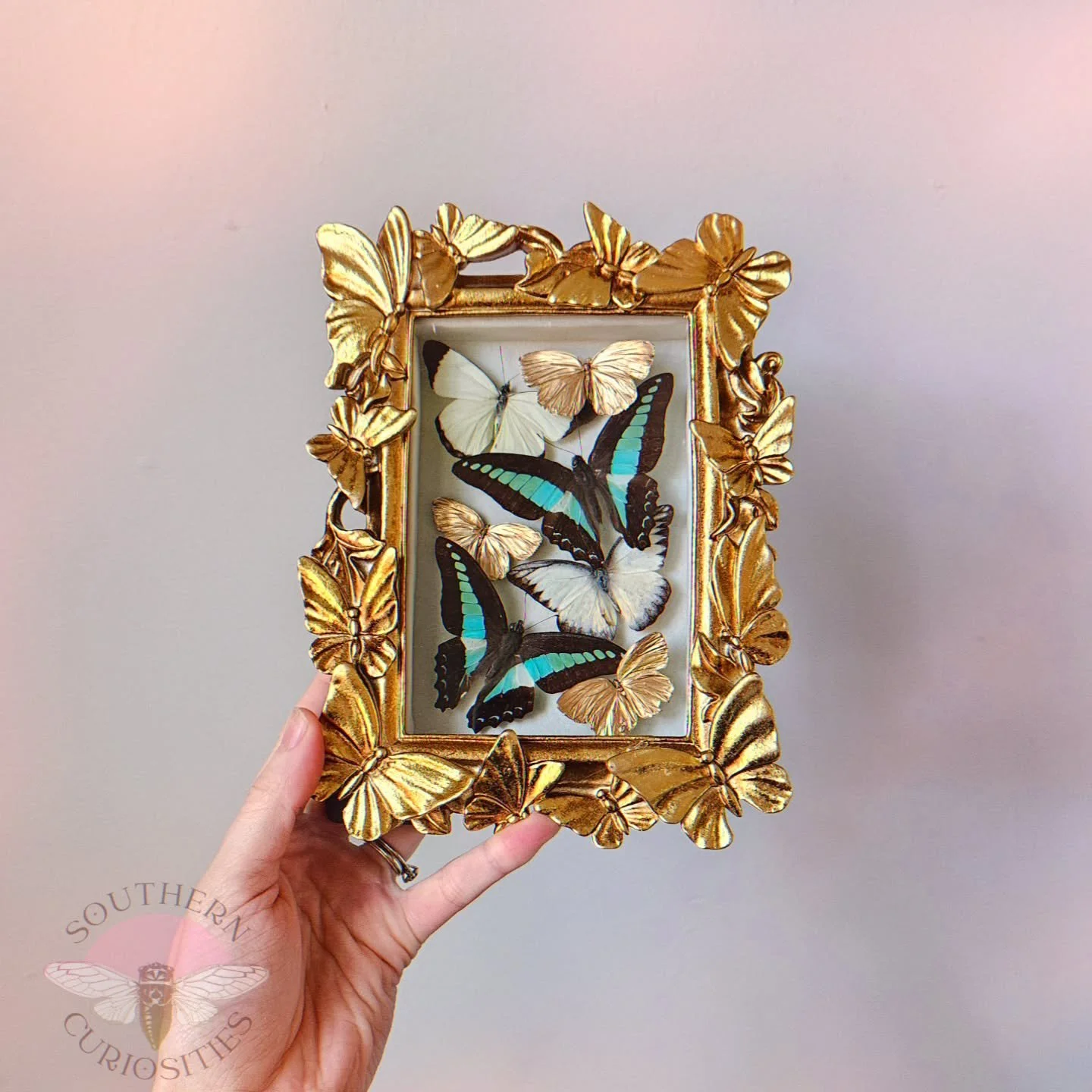At heart, I’ve always been an artist. As a kid, I never stopped creating. Whether I was painting, sewing, sculpting, or cobbling together little inventions from odds and ends, I just always needed to be creating. In 2019, my curiosity led me into the world of entomology, and I began teaching myself insect pinning. What started as a fascination quickly grew into a passion, and by 2020 I started Southern Curiosities as a way to share my creations with others.