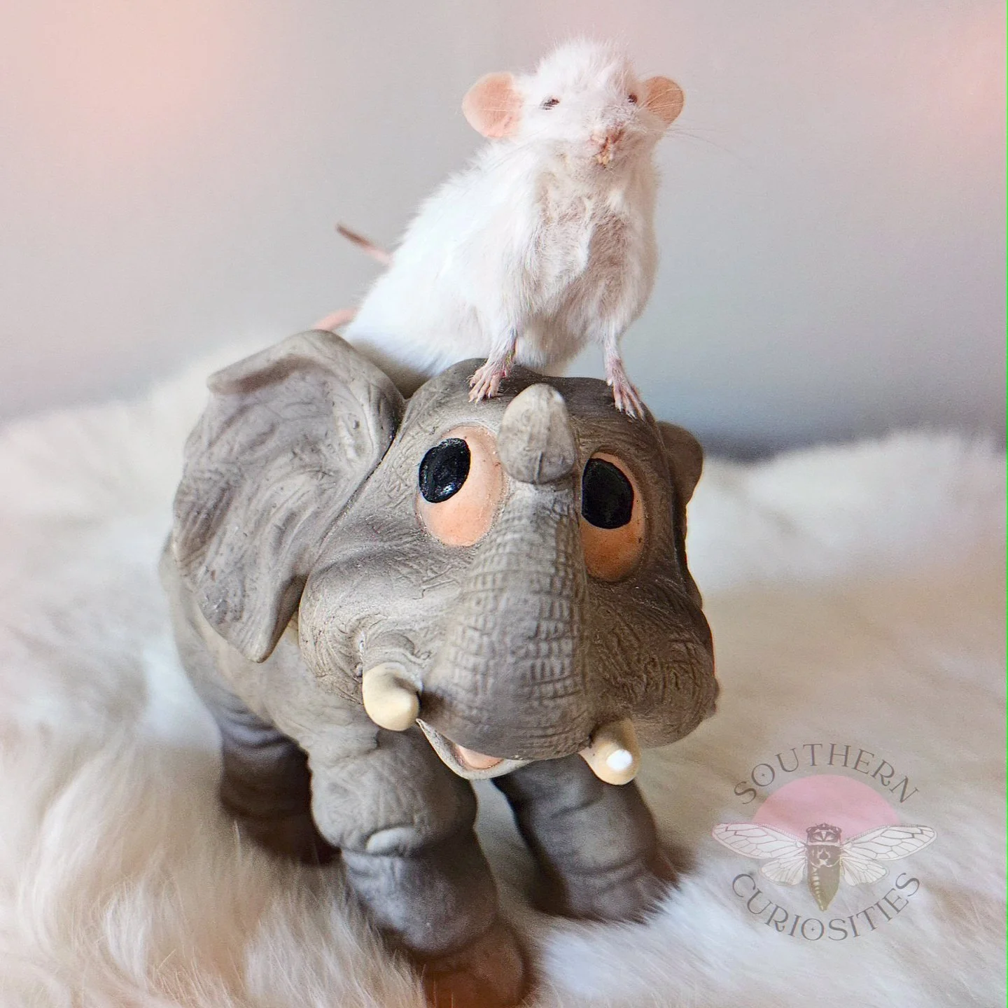 Learn more about where each specimen comes from in our FAQ! nature art + whimsical taxidermy WEBSITE UPDATE 10/24 @ 10AM EST Southern Curiosities Sticker $4.00 Preserved Rat Testicles $10.00 Preserved Rat Heart $10.00 Lucky Rat Tail $20.00 Rabbit Pelt Mini Frame $35.00 Sold out Courtesan Butterfly Frame $55.00 Vindula dejone Butterfly Frame $60.00 Grasshopper Frame $75.00 Commander Butterfly "Clock" $75.00 Charaxes brutus Butterfly Frame $80.00 Southern Monarch Frame $85.00 Bluebottle Duo Frame $85.00 Owl Butterfly Frame $100.00 Beetle Trio Frame $115.00 Rainbow Milkweed Locust Frame $115.00 Owl Butterfly Frame $160.00 Atlas Moth Frame $185.00 Polyphemus Moth Duo Frame $225.00 Atlas Moth Frame $225.00 Butterfly duo Terrarium $180.00 Silkie Chick $125.00 Toilet Time Mouse $140.00 Sold out Sun Kissed Mouse $140.00 Witch Mouse $140.00 Pumpkin Mug Mouse $140.00 The Mouse & The Elephant $160.00 Witch Rat $160.00 Witch Gerbil $160.00 Mini Mouse Dome $160.00 Fortune Teller Mouse $175.00 Biker Mouse $175.00 Demon Mouse Dome $175.00 Pony Princess Mouse $175.00 Stripper Rat $175.00 Stripper Rat $175.00 Mouse Pumpkin Dome $175.00 Rat-a-lope $180.00 'Spill the Tea' Rat $200.00 Banana Split Rat $200.00 Vampire Rat $215.00 Pony Princess Rat $215.00 Sold out Jackalope $400.00 White Rabbit $500.00 Raccoon $700.00 Mouse Southern Curiosi-Tee $30.00 Luna Southern Curiosi-Tee $30.00 Crescent Moon Collection Prints $25.00 Bee Proud Print $15.00 Song of the South Print $15.00 Sticker Pack $20.00 Custom Order Deposit $25.00 Custom Order Deposit $50.00 Mini Bee Dome $25.00 shop in person! click here to see my event calendar! If you have a particular piece you’d like to custom order, my commissions are OPEN you can fill out a custom order form by clicking here.